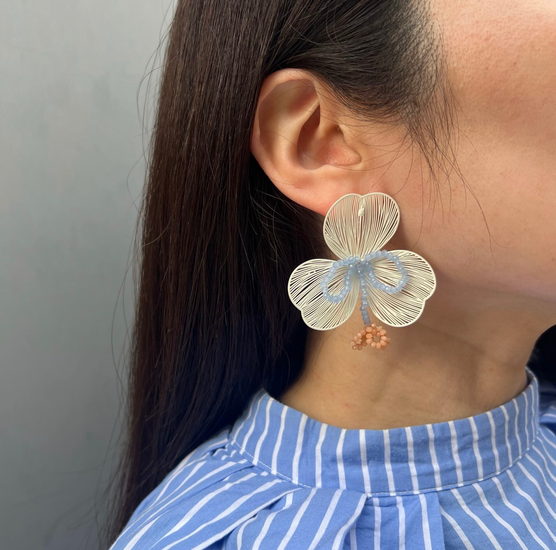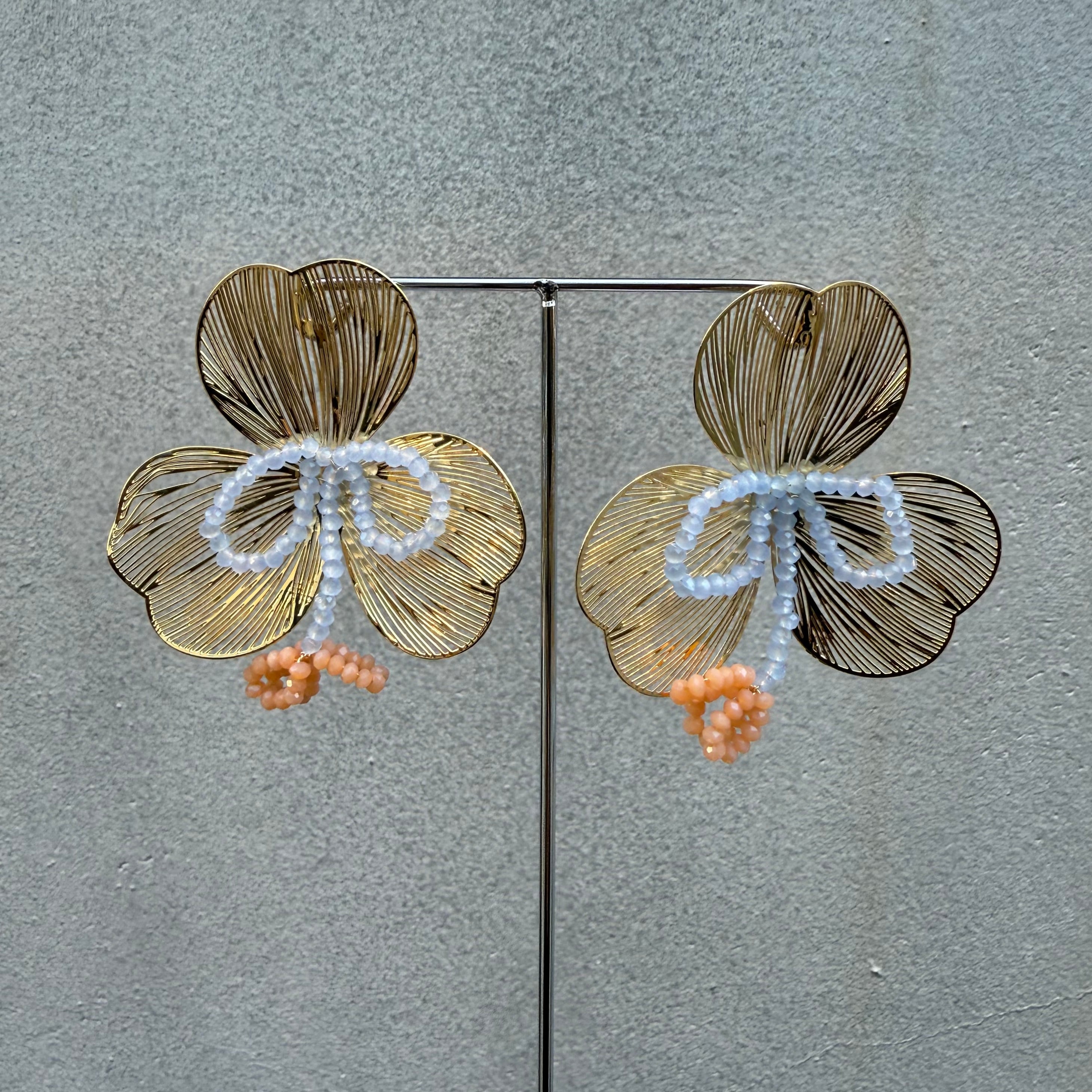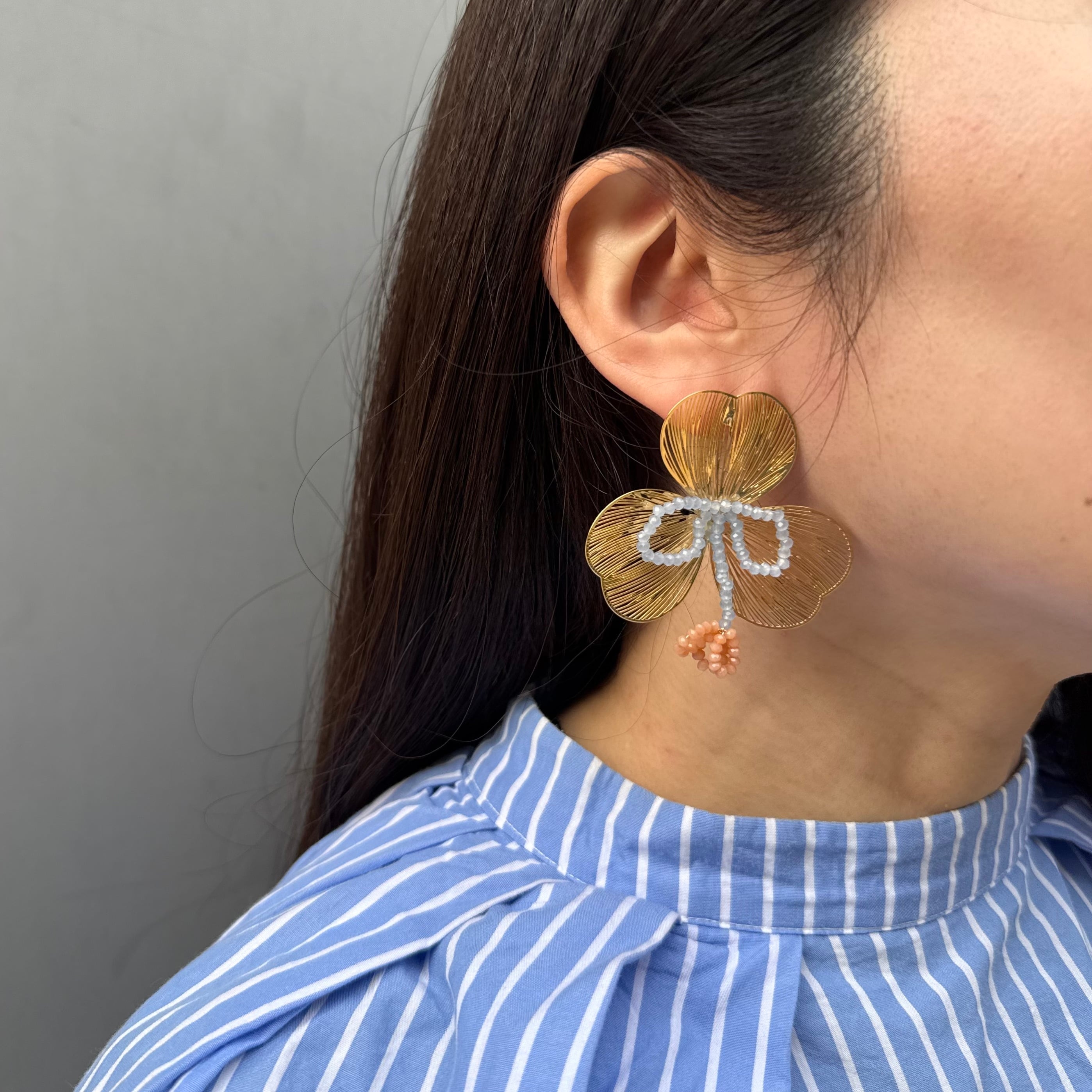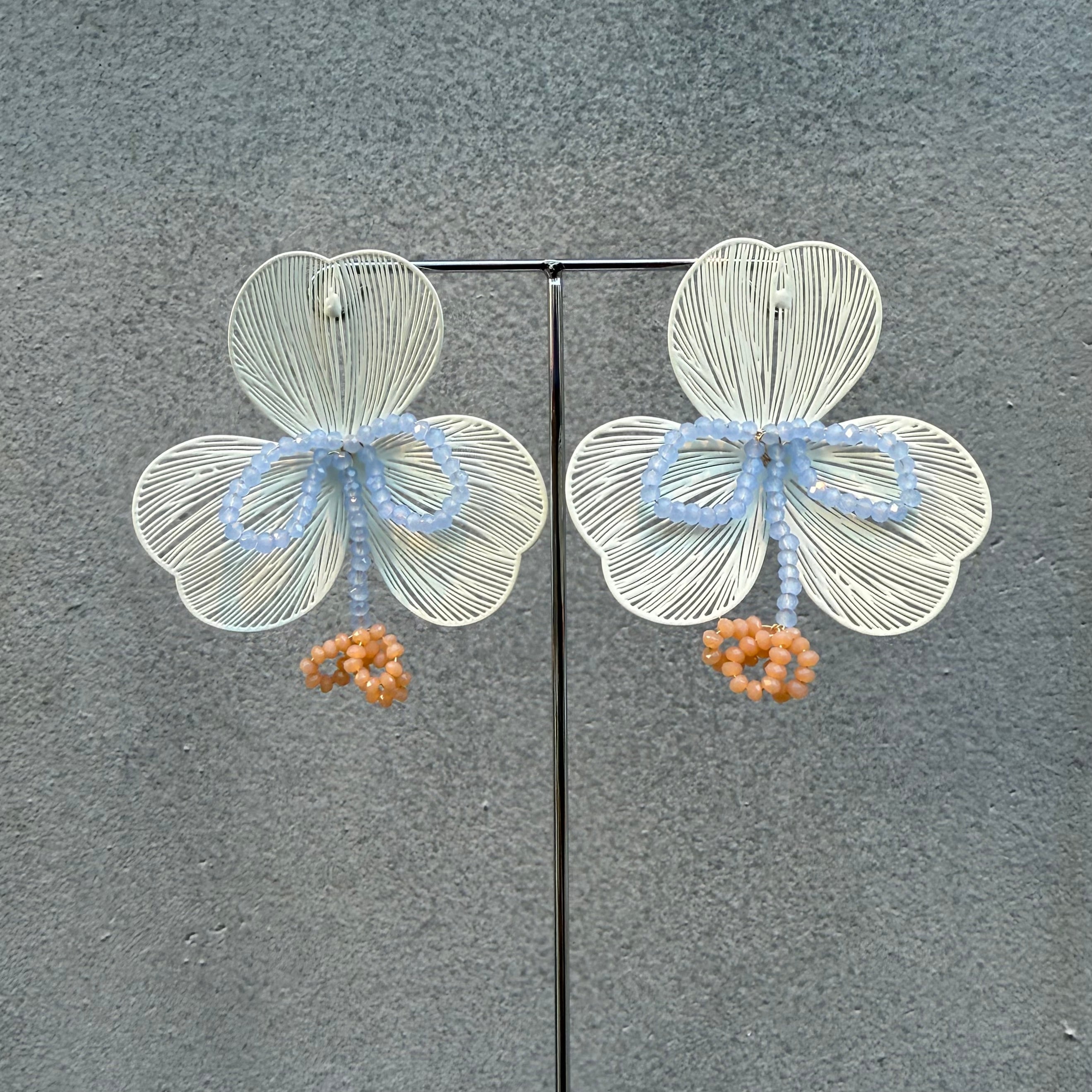繊細なデザインにカラーが光るフラワーピアス
