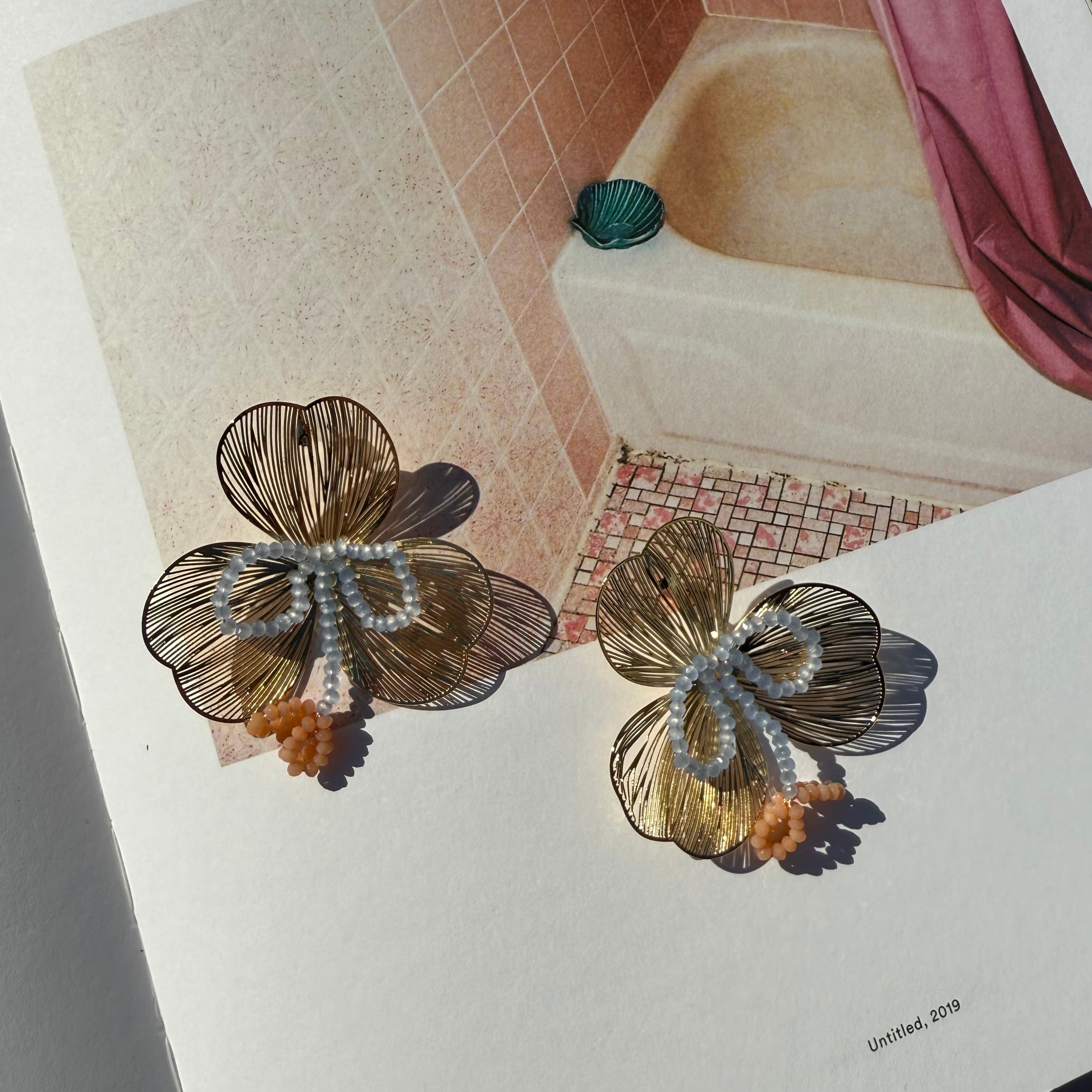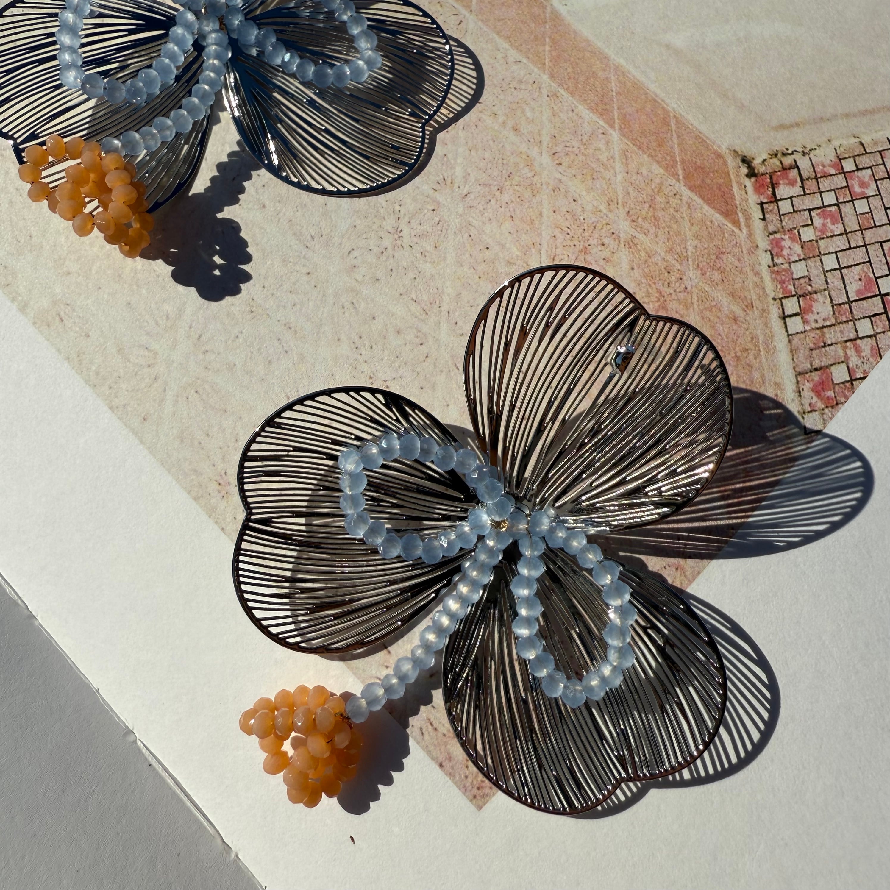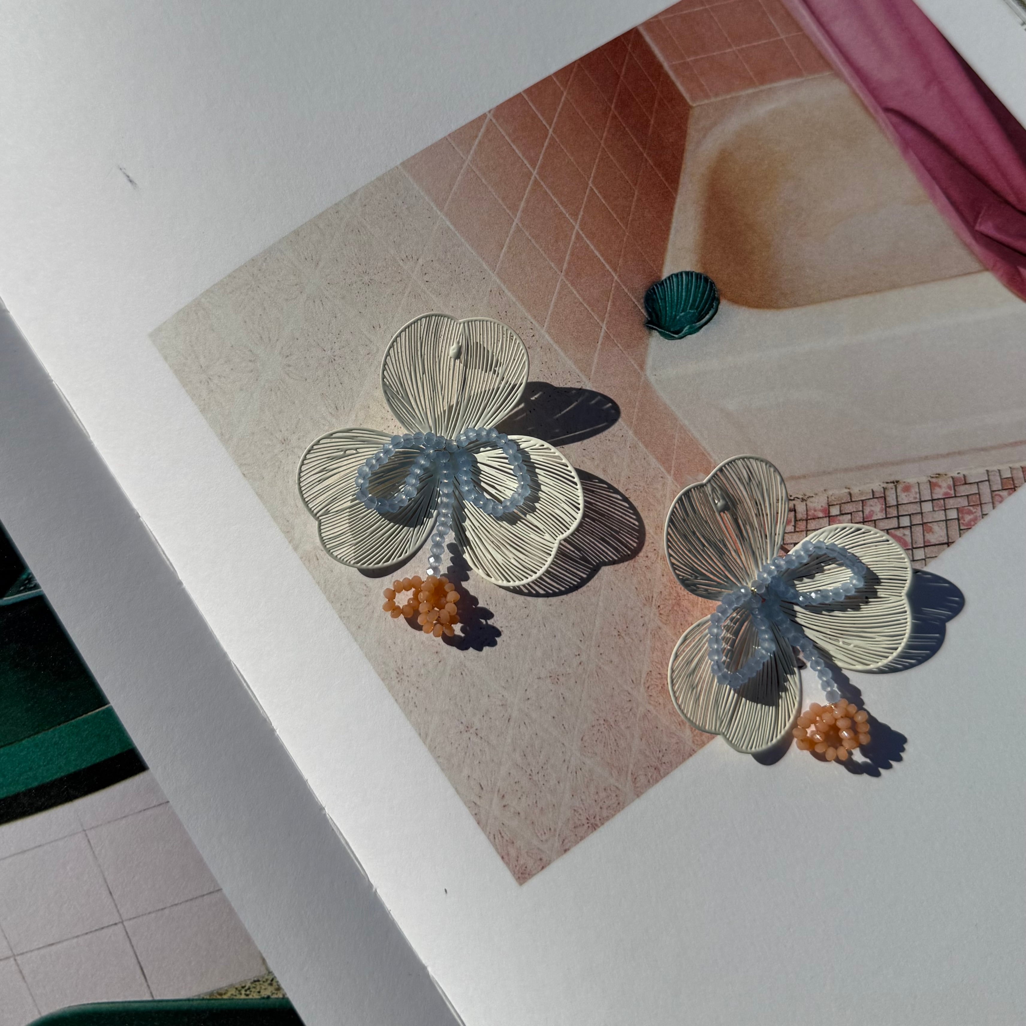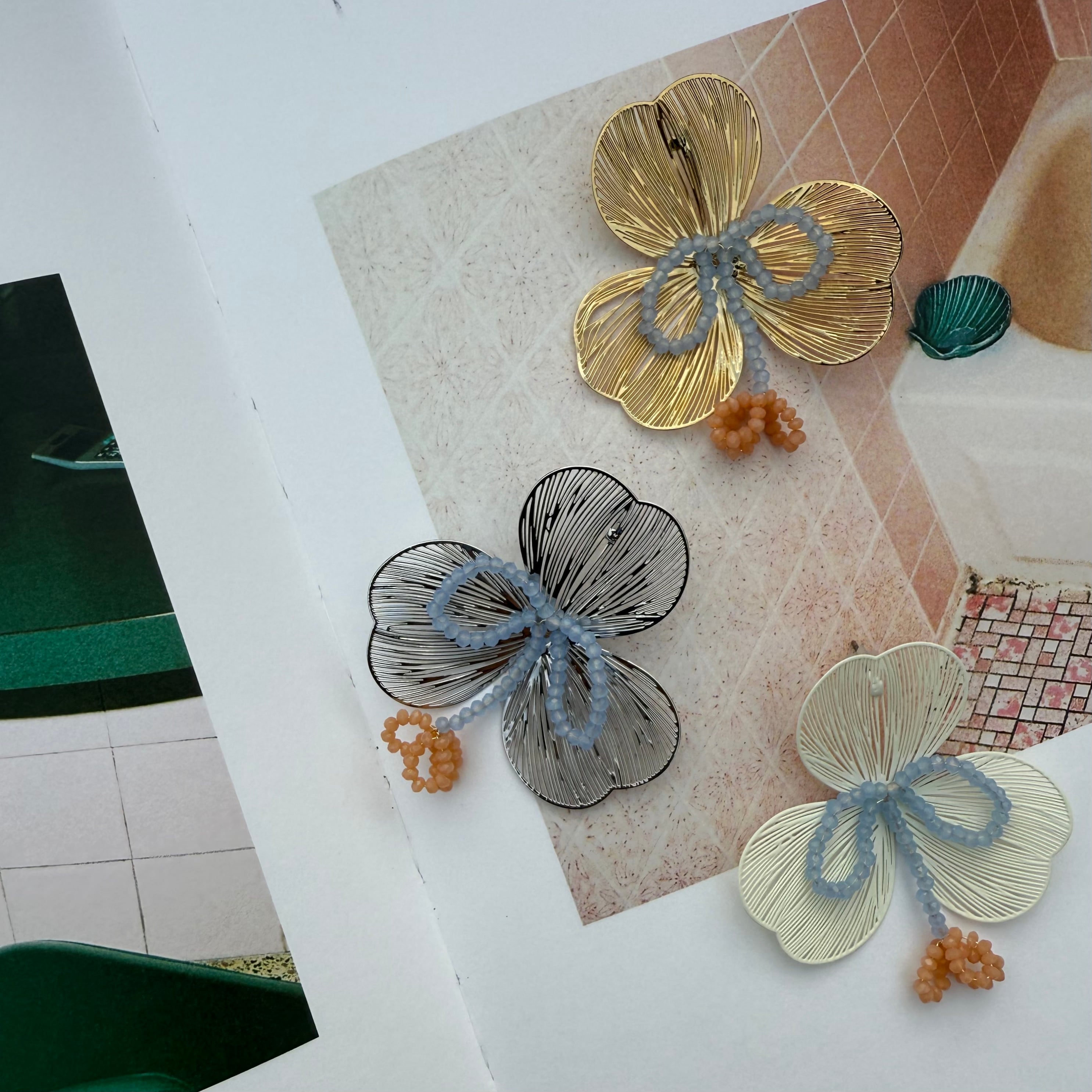 繊細なデザインにカラーが光るフラワーピアス