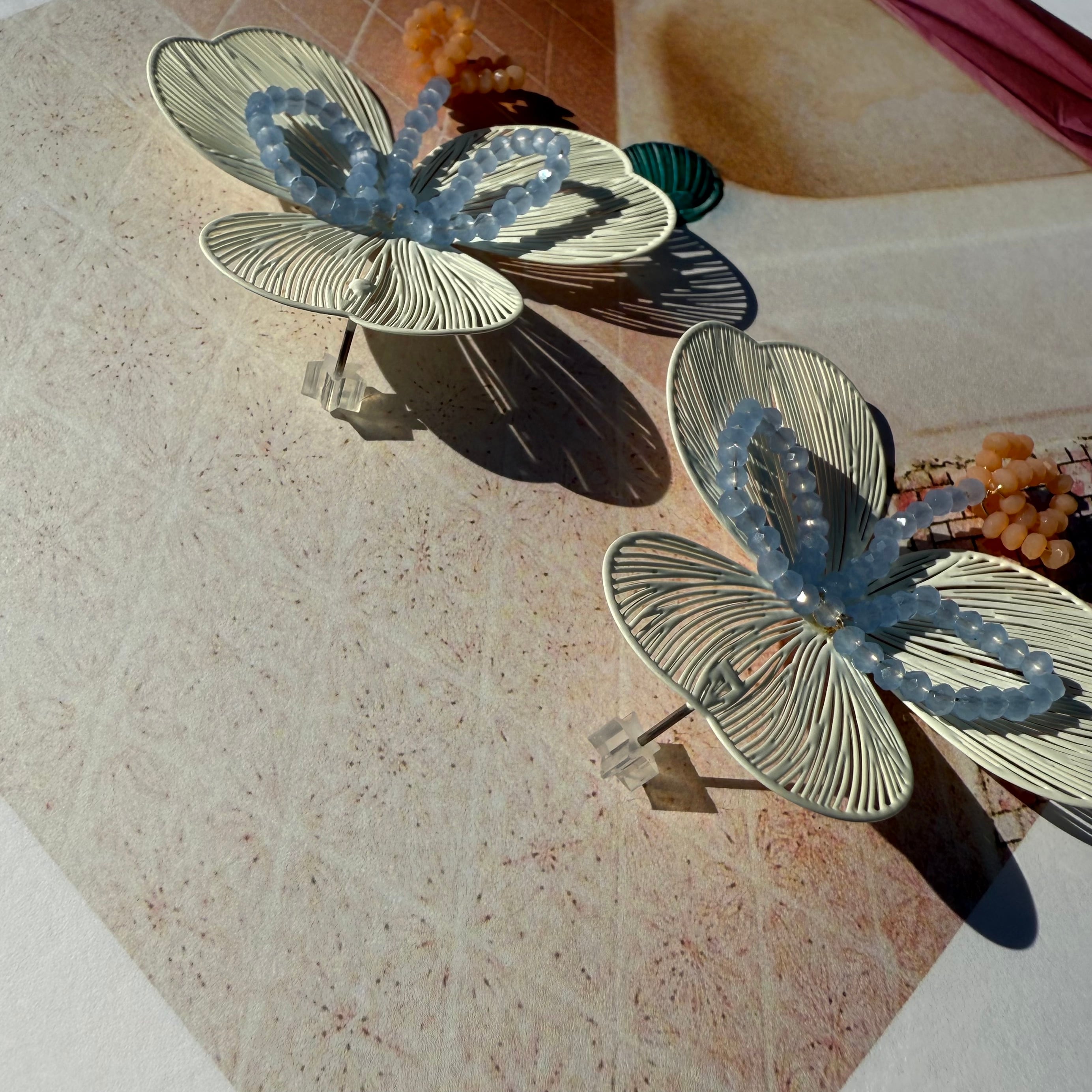 メタリックな印象にビーズをあしらうことで