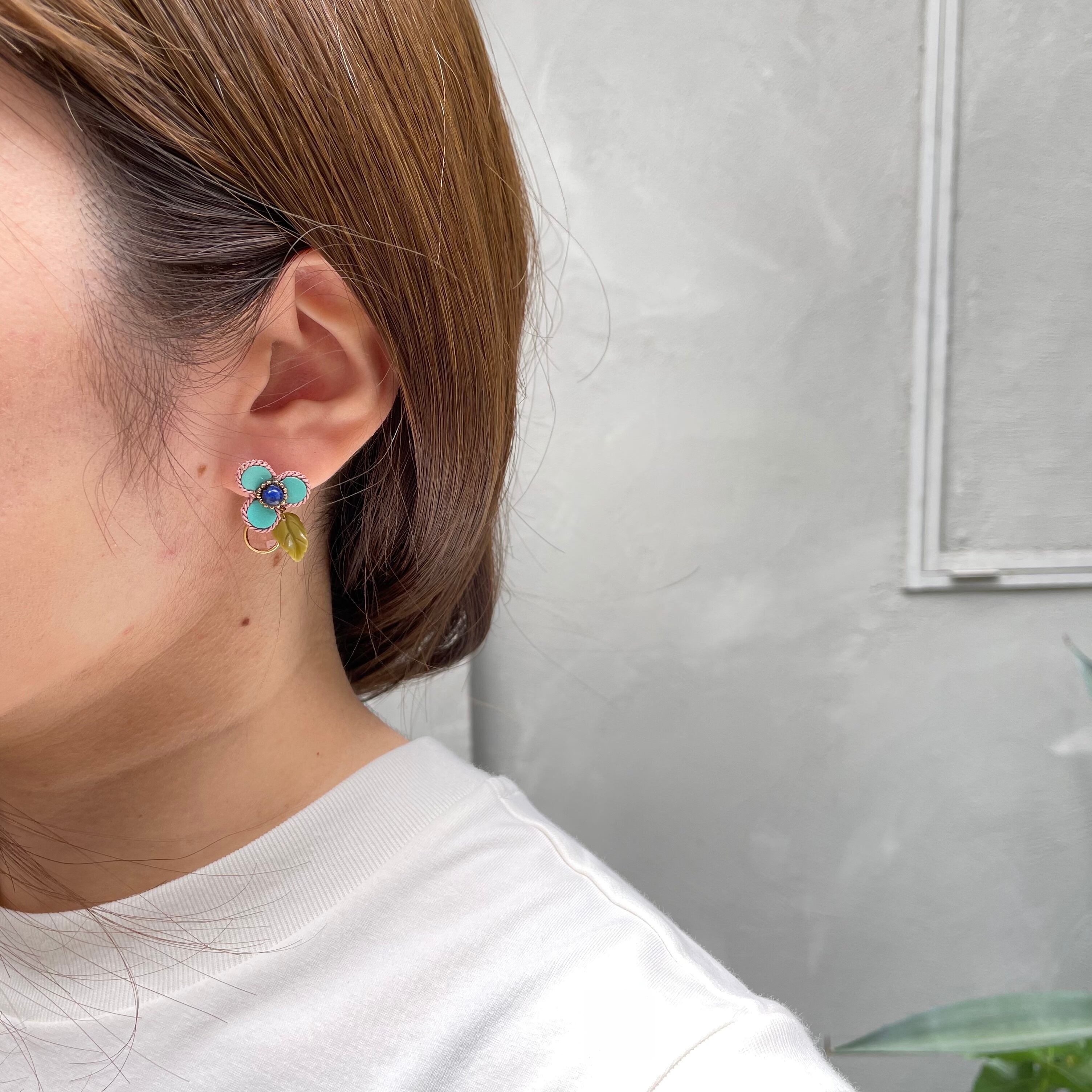 トップのフラワーのみでも、バックキャッチを別のピアスにも使用できる3way
