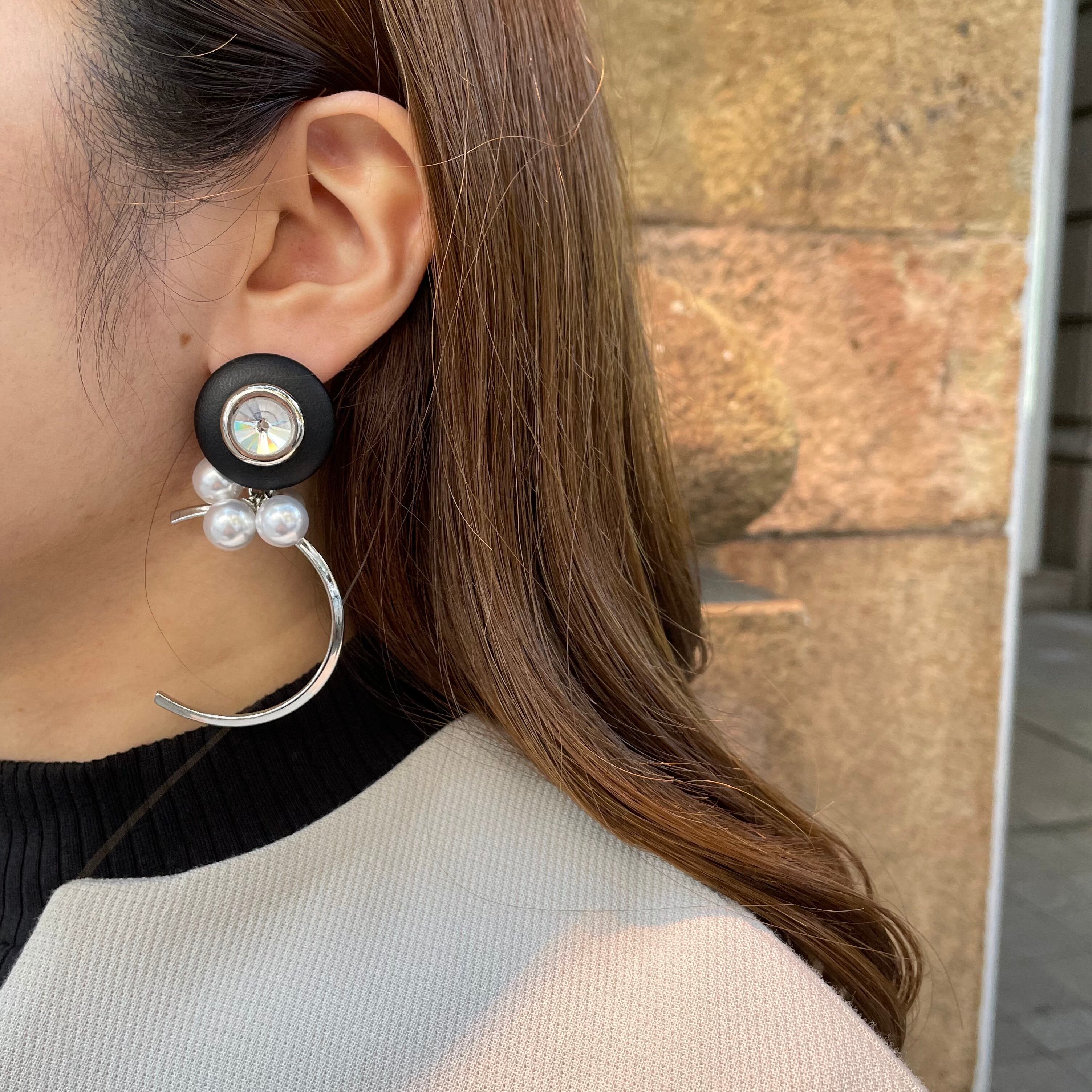 パールの上品さにブラックをきかせスタイリングを引き締め