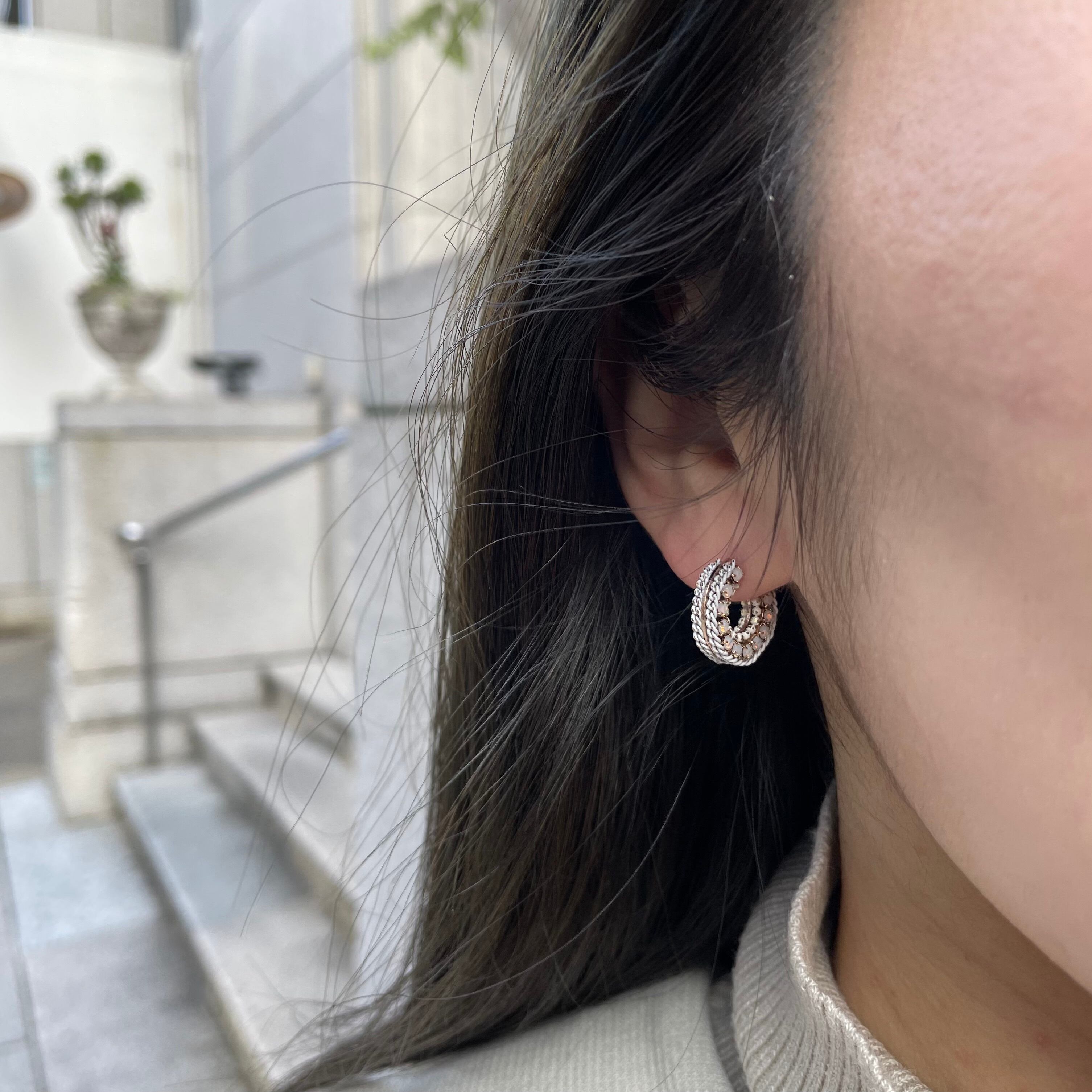小ぶりながら内側やサイドにまでデザインのあるこだわりピアス